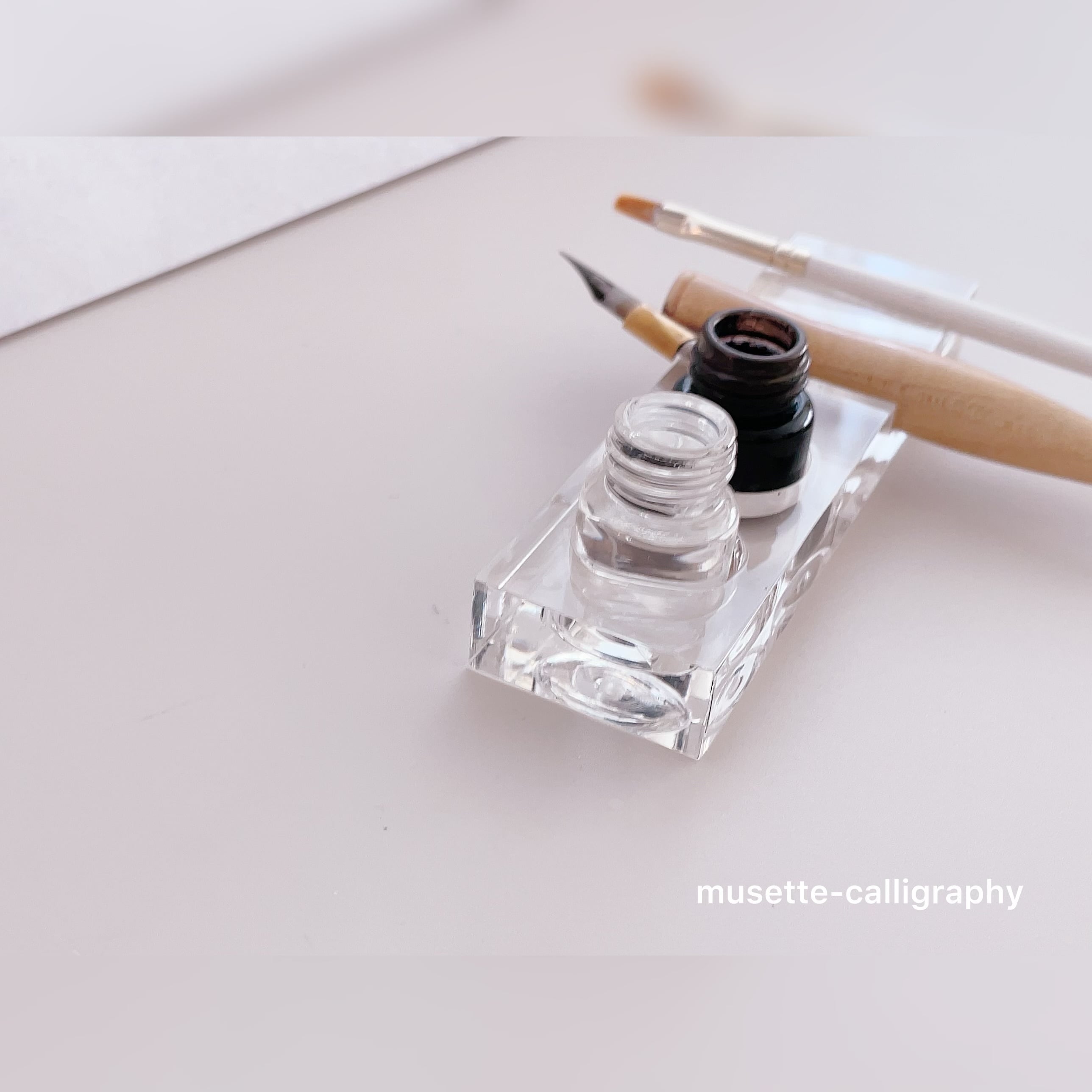 musetteオリジナル、アクリル製のインクスタンド&ペントレイは、